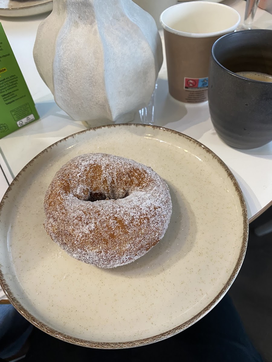 Till vår förtjusning fick vi helt nygräddade finska munkar. Kladdkakan var också väldigt god. Värt ett besök i Mänttä!